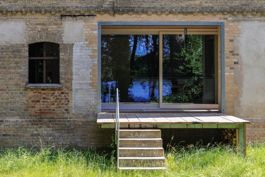 Das Haus ist Teil des Gutes Summt und liegt neben dem denkmalgeschützten Gutshaus in einem weitläufigen, wilden Garten mit großen Bäumen, der bis an den See reicht.
